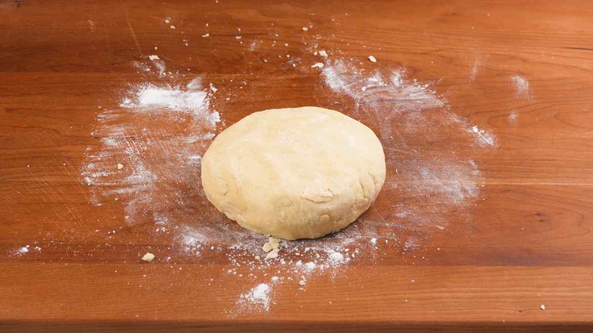 5. Gently line the bottom of a 9 inch pie pan with the rolled dough. Hold the second rolled ball for the top layer.