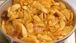 2. Cook on low heat till apples have cooked down. Approximately 10 minutes. Stirring till apples are well coated.