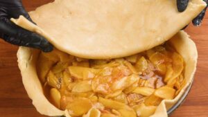 2. Cover pie with rolled out dough ball.
