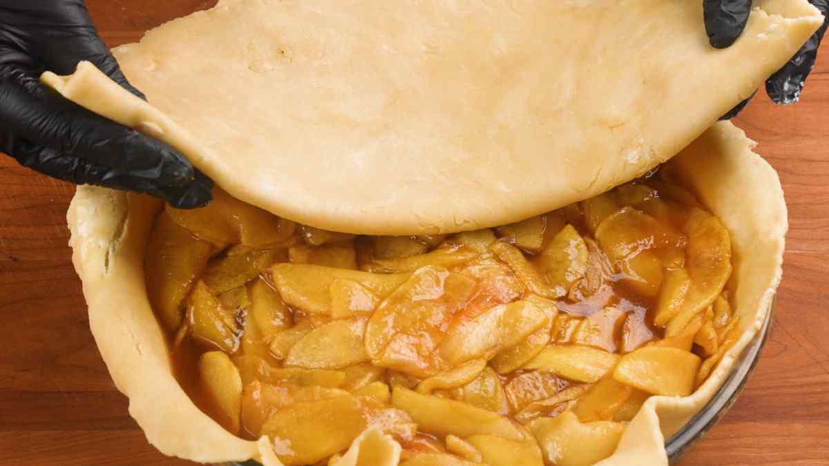 4. Brush the top layer of the pie crust with the egg yolk.