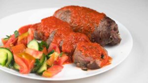 You can add the braciole to a Sunday sauce (see our recipe) or you can make a quick marinara sauce (see our recipe) and spoon over the braciole, add a vegetable or a salad to complete your meal!