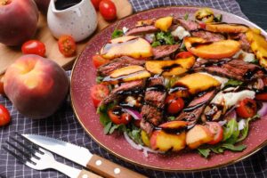 Read MoreGrilled Steak And Peach Salad With Burrata Cheese This is a quick and easy summertime salad that is so flavorful and delicious. It’s so colorful and beautiful to look at. Serve as an individual salad or family style for lunch or dinner. Ingredients 1 lb flat iron steak 1 peach pitted and sliced in half 1 Burrata cheese sliced 5 oz arugula- washed and dried 1 pint mixed cherry and grape tomatoes ½ red onion chopped Balsamic glaze Salt and pepper to taste Directions 1. Salt the flat iron steak and grill for approximately 5-6 minutes each side. 2. Brush […]