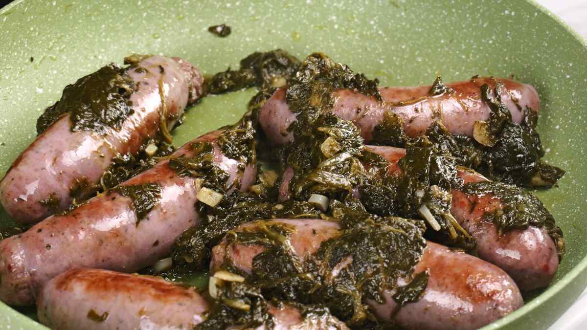 4. Remove the sausage from the skillet, add more olive oil and sauté the garlic till golden.