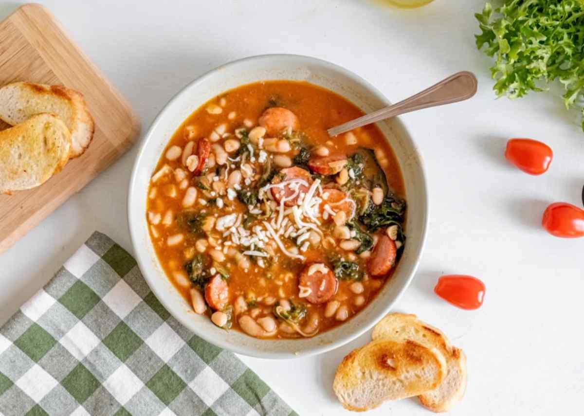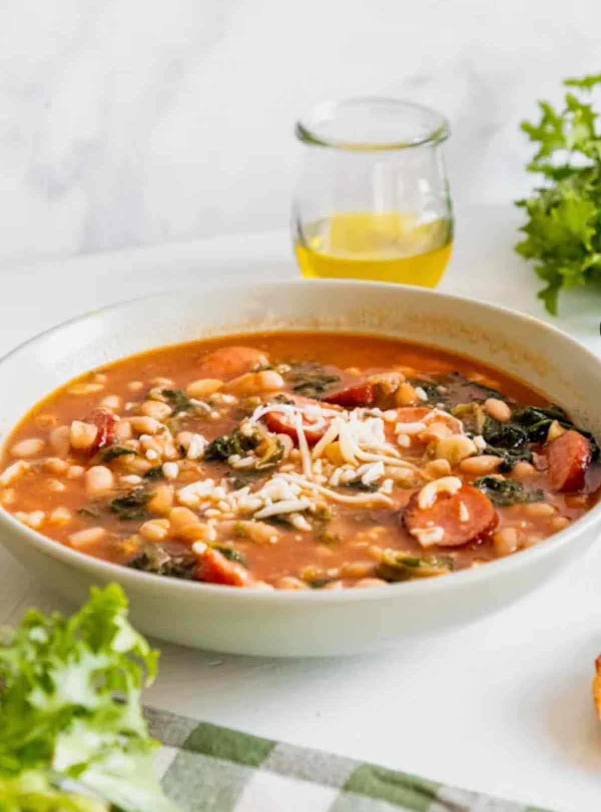 Serve hot with grated cheese and warm crostini’s or a loaf of Italian bread.