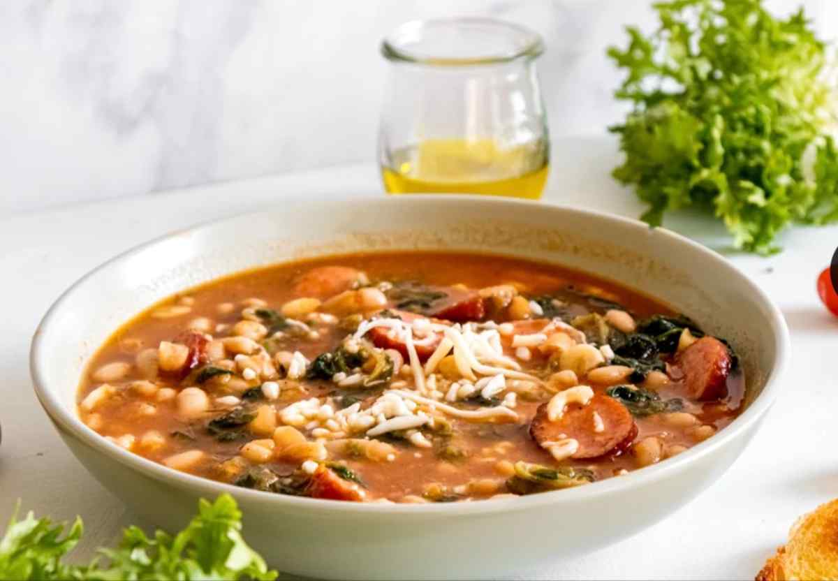 This dish is a staple in our house. It combines escarole with cannellini beans to create a hearty stew like meal. We love it flavored with pork products like sausage or pork chops. For a very hearty dish you can add a small pasta like ditalini or elbows. Serve it as a main dish with hot Italian bread or as a side dish or starter.