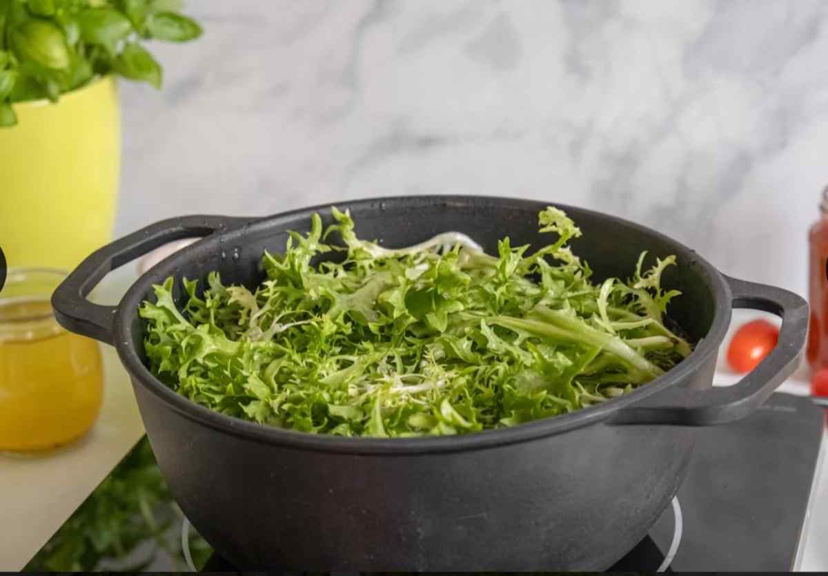 2 Add the cleaned escarole to a large pot and boil until leaves are soft. Approximately 20 minutes. Remove from heat and drain.