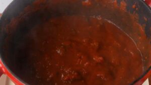- Mix and cook over a medium heat. Let tomatoes cook down. Let simmer.