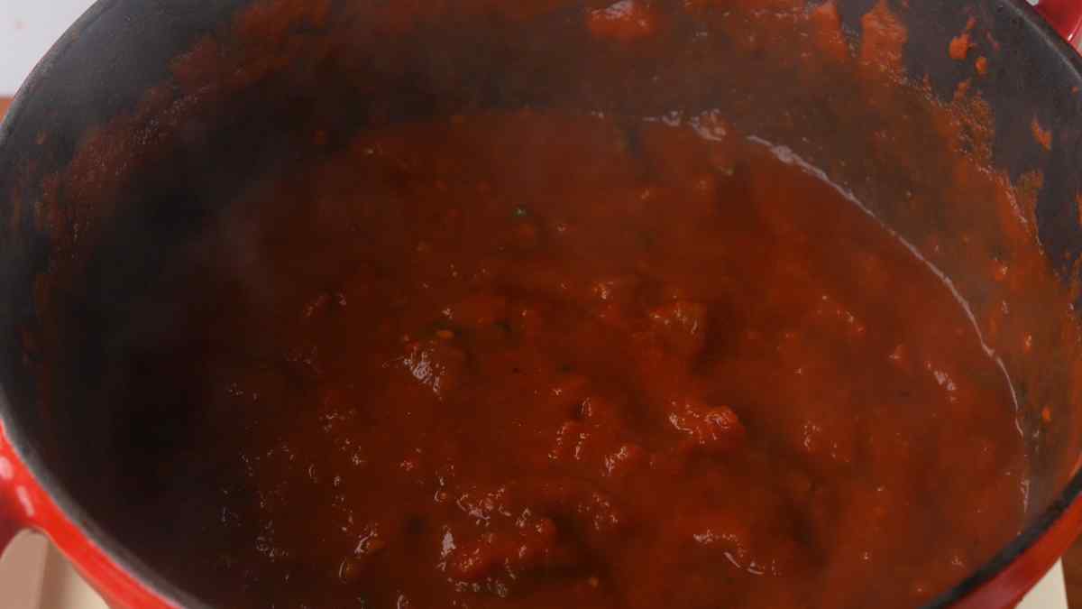 - Taste and adjust sauce. If needed, add more sugar, wine or salt and pepper. When adjusted, add the basil and let simmer for 40 minutes.