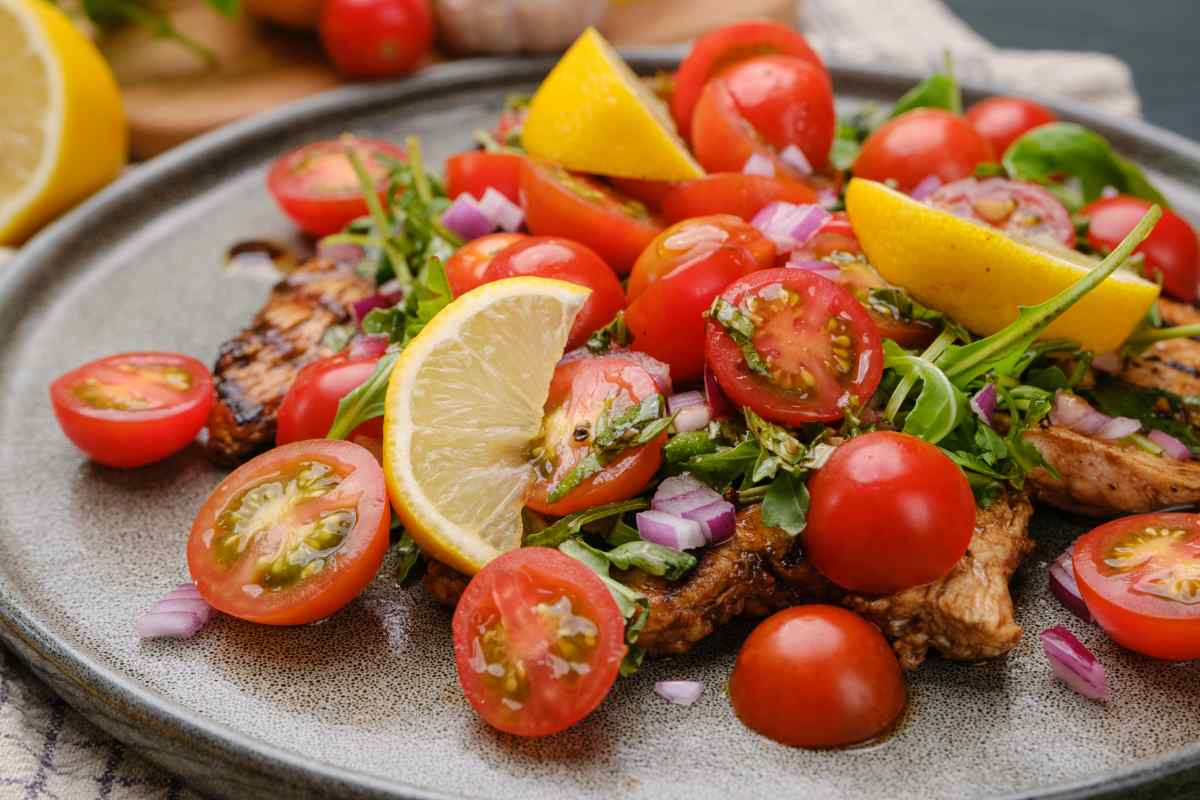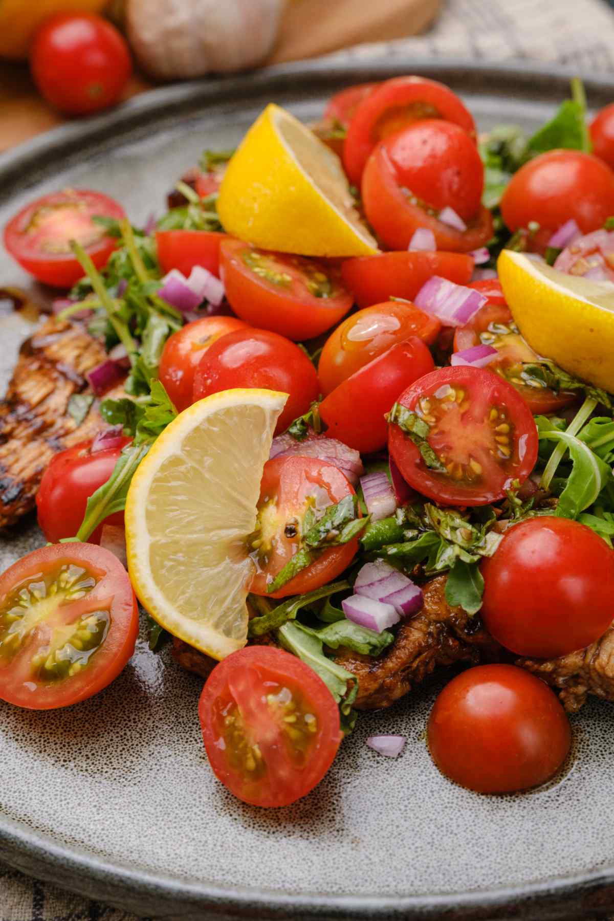 2. Begin building the salad on top of the chicken.