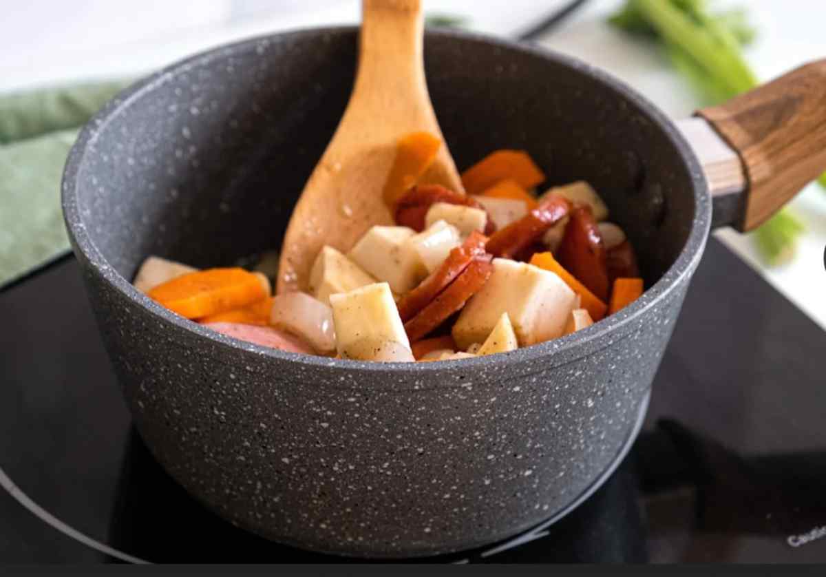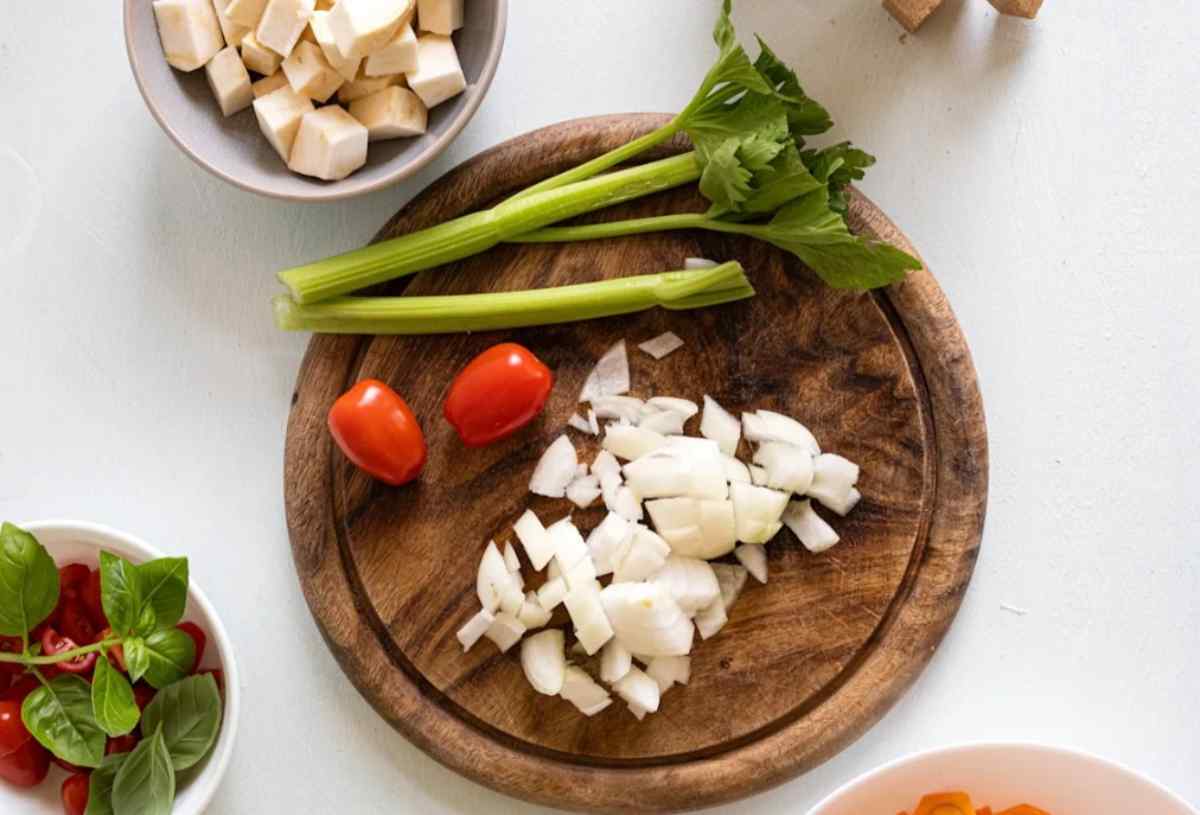 3. Add the chopped vegetables to the oil, cover and let soften for 15 minutes. 4