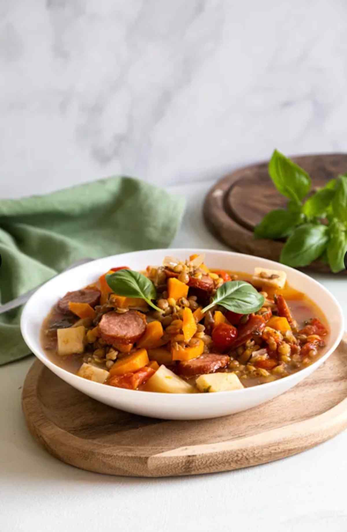 This is and was another dinner staple in our house. This flavorful soup can be served as a starter or as a main dish. This dish can be made ahead of time for optimal flavor.