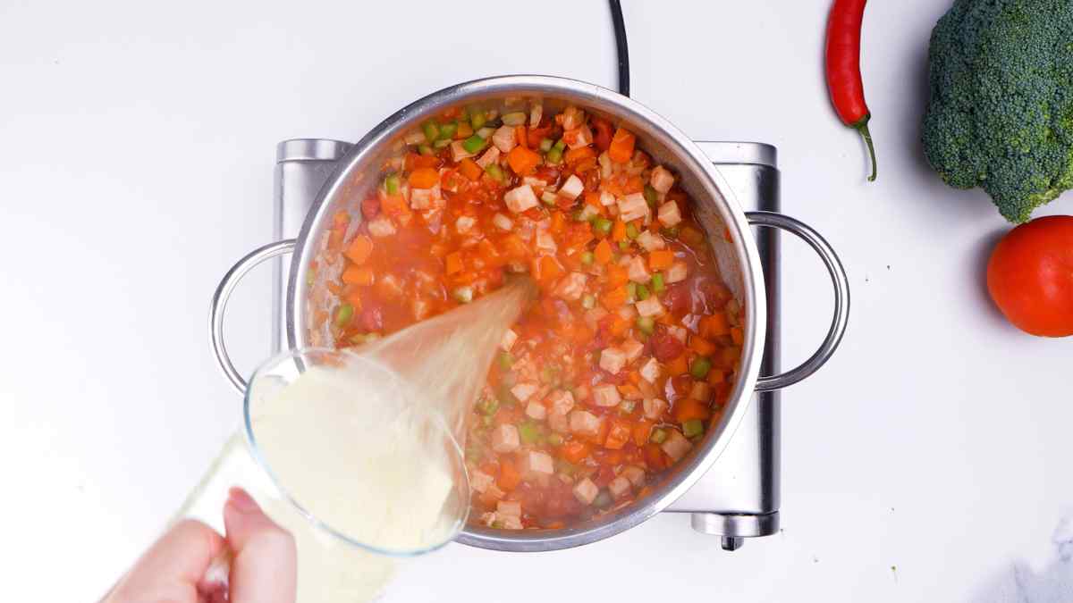 2. Add the chopped onion, celery, carrots, diced tomatoes and sauté another 10 minutes.