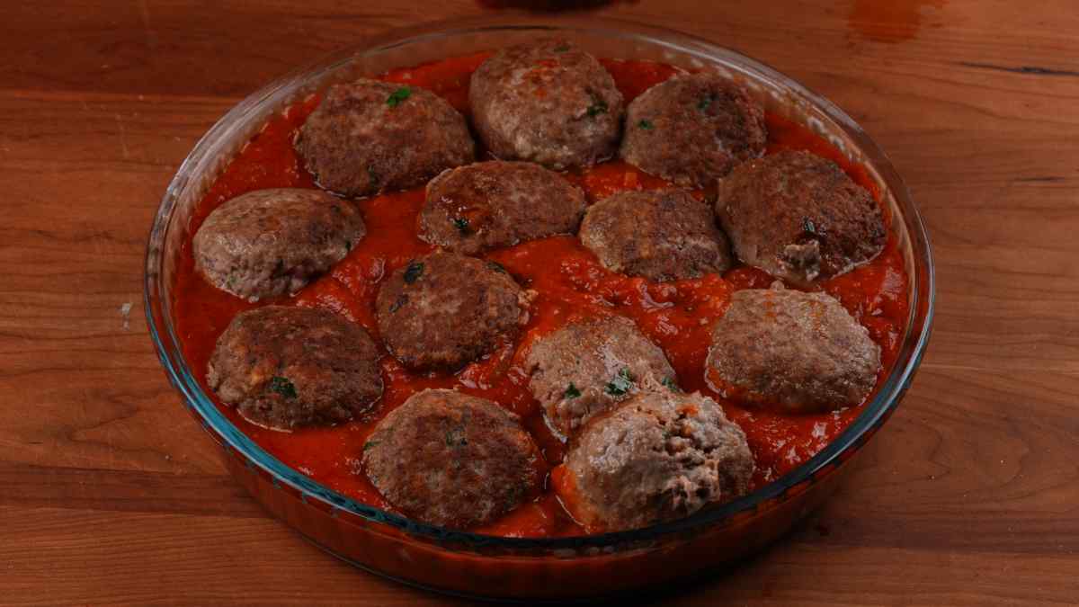 3. Cover the meatballs with tomato sauce.