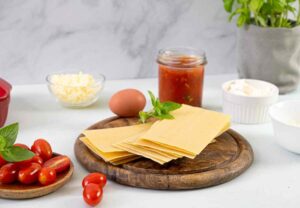 In boiling salted water add the lasagna and cook. Taste after 8 minutes and adjust time. don’t overcook. When done cooking, drain and put aside.
