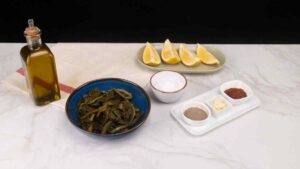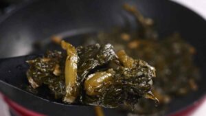1. Wash and cut about 1 inch off the bottom part of the broccoli rabe. Dry well.