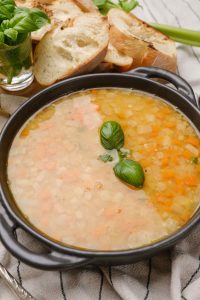 This was a winter staple in our house. It’s a hearty dish that is great for warming you right up. This recipe uses cubed ham but you can substitute bacon or sausage for an even heartier flavor.