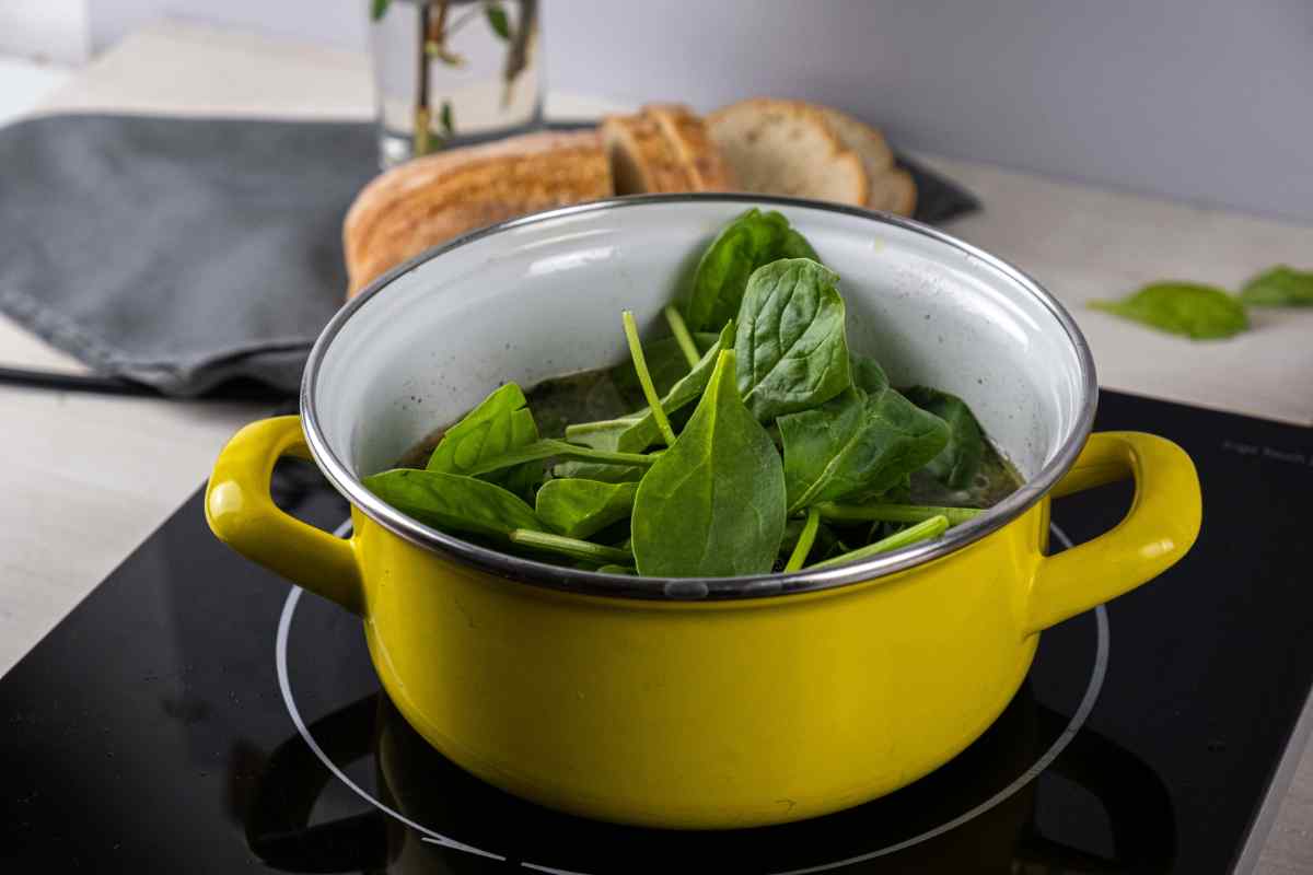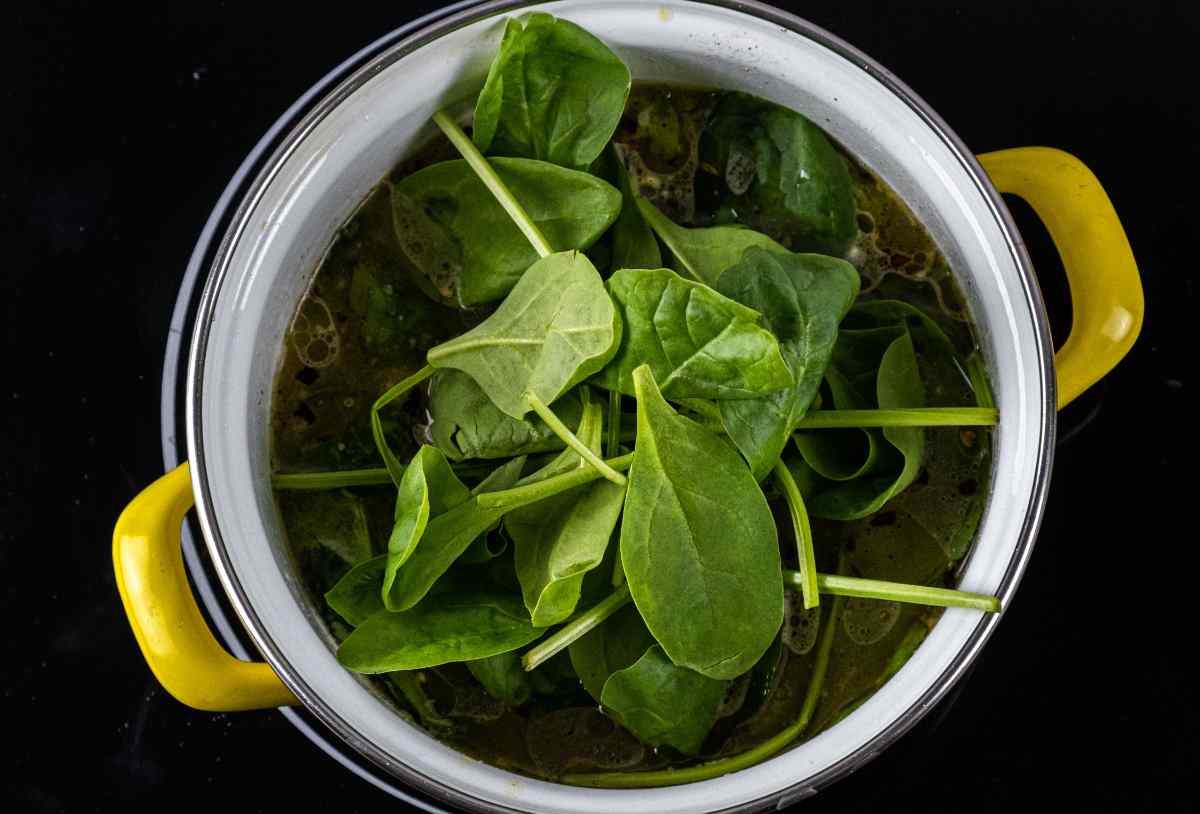 2. Add the chicken broth, grated cheese, and spinach. When spinach is wilted add the eggs, do not stir yet. Let the eggs cook until firm. Once the eggs are firm, stir the soup.