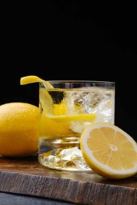 4. Squeeze the lemon or grapefruit rind into the glass.
