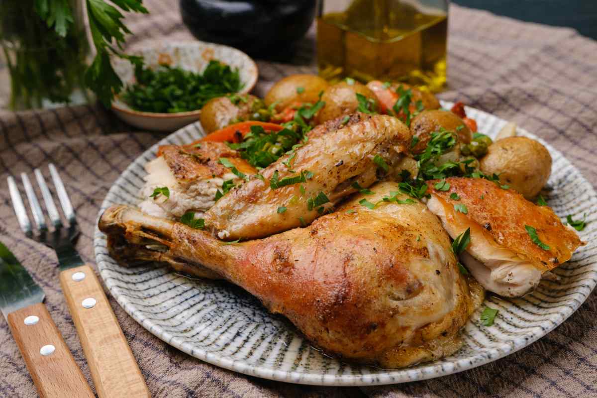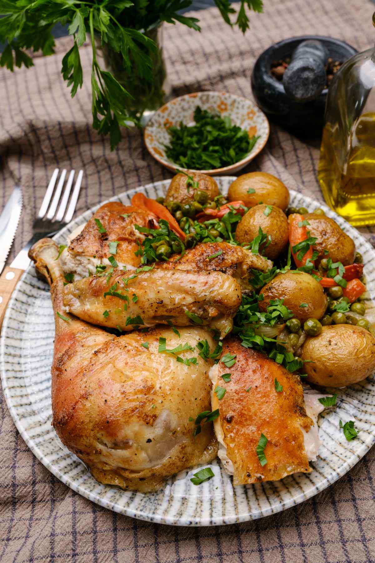 12. Cut up the chicken and serve the vegetables on the side.